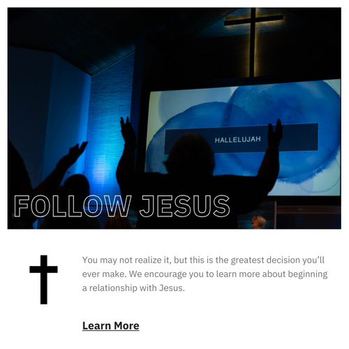 Wherever you are on your faith journey, we can’t wait for you to learn more about God’s plan for you and discover His purpose for your life. We are here to help you take NEXT STEPS toward the hope and freedom that comes from walking with Jesus.